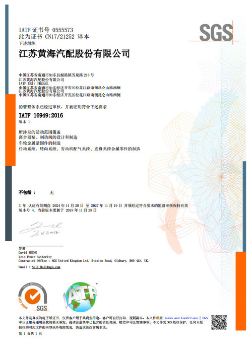江蘇黃海汽配股份有限公司是一家具有中型生產規模省級股份制企業,公司享有進出口自營權,中國商檢一類企業……